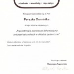 - Kurs z zakresu terapii poznawczo-behawioralnej – w trakcie