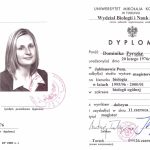 - Biolog – studia magisterskie na Uniwersytecie Mikołaja Kopernika w Toruniu
